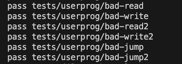 먼저 bad시리즈를 보면 일단 잘못된 주소(잘못된 포인터나 커널 영역을 읽으려할 때)에 대해 무언가를 요청 시 정상적으로 죽거나 -1을 반환해야하는 테스트이다! 결국 그냥 예외처리를 잘 해주면 되는 것인데..