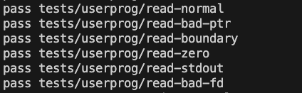 args, halt, exit, create, open, close, read, write, fork, exec, wait..까지는 통과가 될 것 입니다